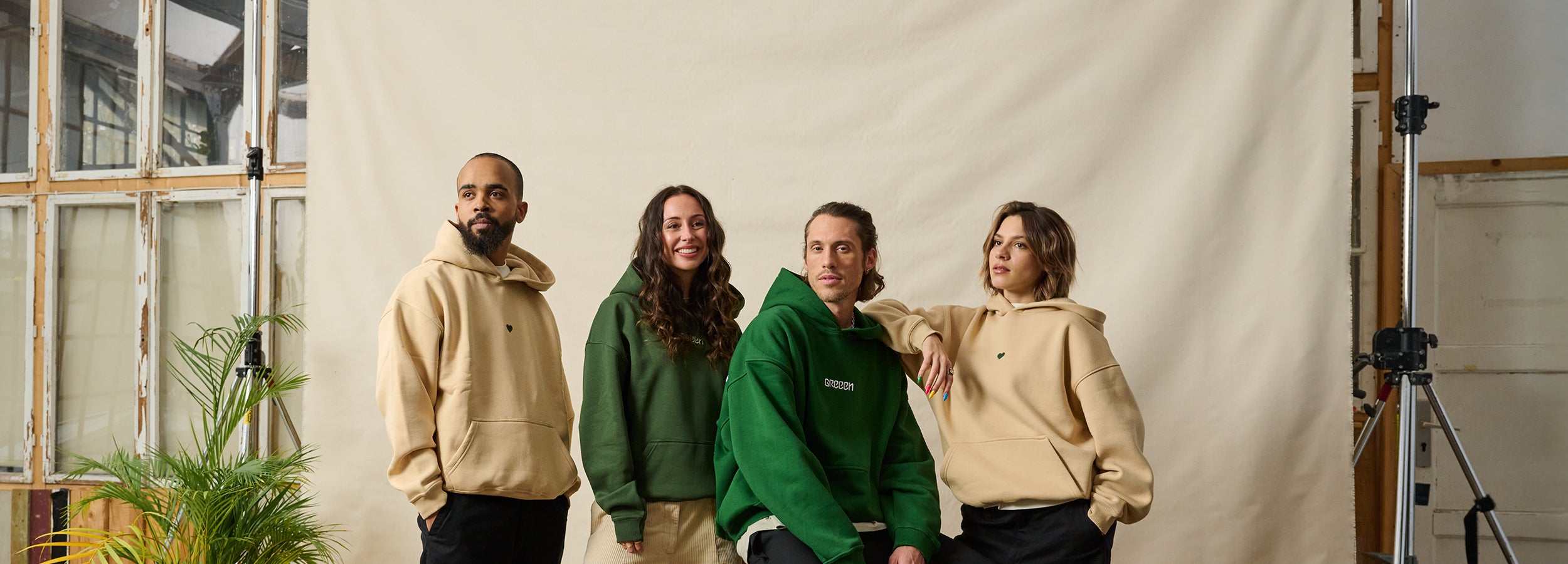 SCHWARZ FISHERMAN BEANIE - GRÜNES LOGO